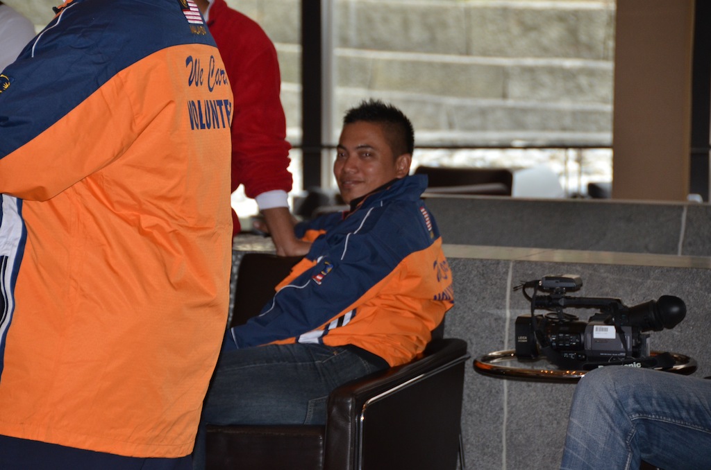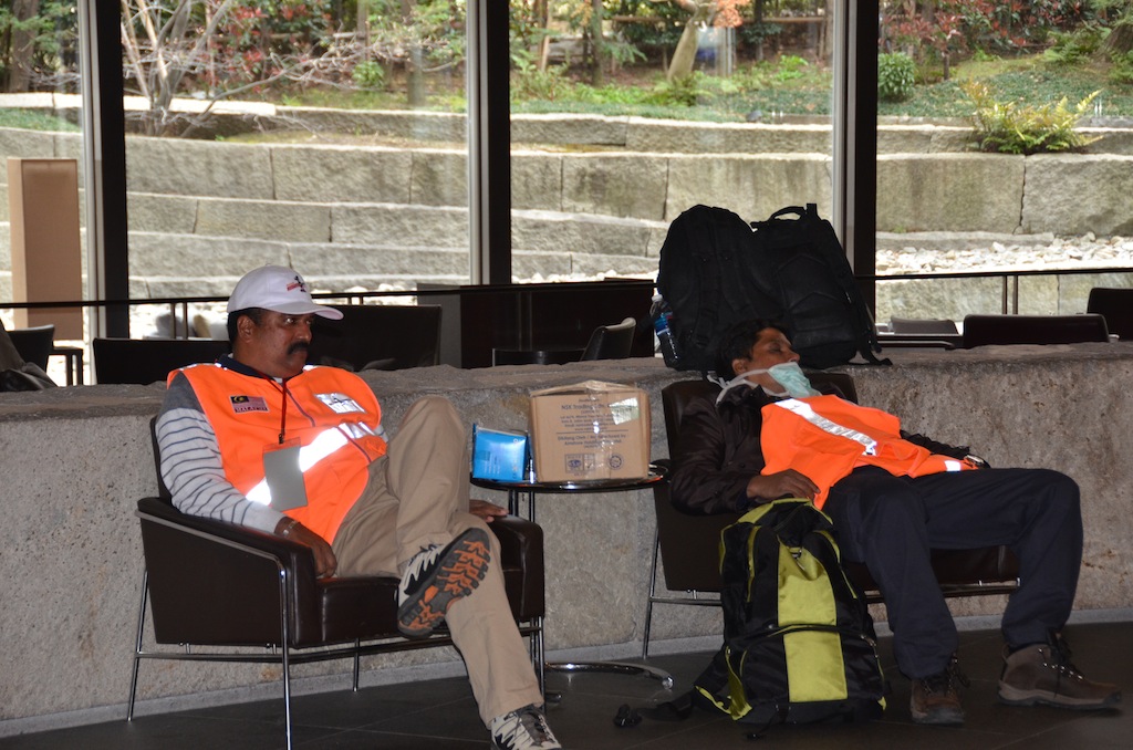 Tokyo le 3 avril: Ce matin est un jour mouvementé. Je vais quitter ma première base pour une immersion dans une zone plus proche des gens. Dernier petit déjeuner qui me donne l’occasion de croiser l’équipe malaisienne. Je profite de cette rencontre pour me rapprocher d’eux et en savoir un peu plus. Ainsi, j’apprend que cette équipe est une ONG nommée « PUTERA ONE MALAYSIA », sa mission a pour but d’apporter un soutien alimentaire, médical et psychologique au sain même de la zone sinistré. 50 membres sont venus pour une semaine. Les frais de leurs séjours sont supportés par leur ambassade. Les photos ci-dessous témoignent d’un séjour éprouvant, confirmé par le très sympathique « toubib » avec qui j’ai eu cet entretien .