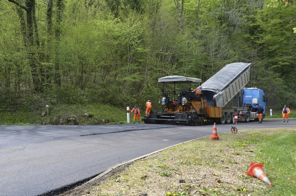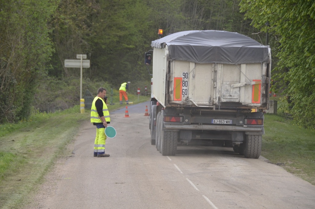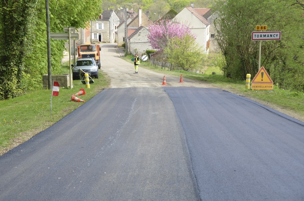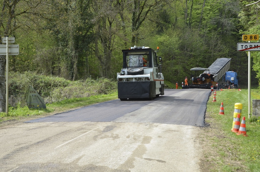 L’Isle le 25 avril: Débuté en 2007 sur la partie Noyers- Grimault, suivi d’une longue interruption, nous avons pu voir récemment des entreprises en uvre dans la réfection de la D86 sur la partie Grimault-Tormancy. Ainsi réalisé les 2/3 du projet de rénovation initial de la D86 couvrant le secteur séparant L’Isle de Noyers. Reste à ce jour la signalisation à réaliser. Particularité de ce chantier, la circulation sur la D86 ne pouvant être interrompue, le recouvrement a été effectué en deux passes, avec la mise en place d’une circulation alternée.
