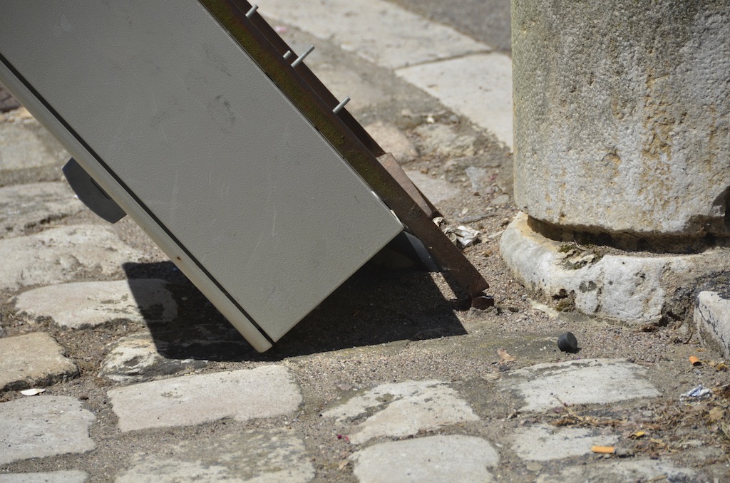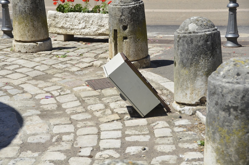 L’Isle le 26 juin: Un coffret électrique impuissant, devant la dégradation quotidienne de ses installations d’éclairages, servant à mettre en valeur un édifice chère à la fierté du village, a préférer donner fin à ses jours en se pendant après ses câbles. le CSF (Comité de Soutien FILDEFER) au courant de la situation est venu au secours du malheureux. Une enquête a permis de déterminer la cause de cette situation. En effet, suite à un manque d’eau, ces pauvres petits appareils d’éclairages se sont retrouvés accessibles à des prédateurs. Une opération de sauvetage est a envisager de ce côté…..