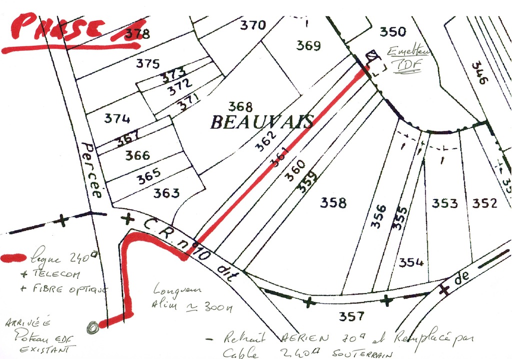 L’Isle le 5 juillet: Si les mois de juillet et d’août sont pour la plupart synonyme de vacances, dans le canton de L’isle sur Serein, c’est plutôt le moment des grands travaux. Un des chantiers les plus attendu est sans nul doute l’installation de l »émetteur GSM (téléphone portable) sur le secteur Civry/L’Isle/Massangis. Ce dernier a pu être mis en œuvre suite à une étude approfondie de la situation. Le cahier des charges des opérateurs, mettant en avant une clause « réception partielle » (zone grise), dégage ces derniers d’une obligation d’équiper la zone. La participation des collectivités  locales, quand à elles, ne peuvent intervenir que sur des « zones blanches ». L’analyse sur le terrain à permis de relever la présence de zones blanches dans le secteur. De ce fait, le Conseil Général a pu engager des études de financements en partenariat avec la Région. Vendredi 1er juillet voyait arriver sur le site, (Émetteur TDF, plateau de Civry), l’entreprise de terrassement chargée des travaux. Une visite sur place a permis d’en apprendre un peu plus sur le déroulement de la mission. La première phase consiste à renforcer  l’alimentation électrique en remplaçant le câble actuel aérien de 70mm2 par un câble souterrain de 240mm2 (voir croquis). Un réseau téléphonique et une fibre optique viendront se joindre à l’alimentation. Les phases suivantes seront détaillées en fonction de l’avancement des travaux. Le second chantier est la réfection du terrain de tennis de Massangis, qui se voit équipé d’un sol tout neuf , en béton spécialement conçu. Ce dernier fait suite à l’espace jardin d’enfant récemment installé dans l’environnement proche du groupe scolaire. Le troisième chantier à voir le jour est le groupe scolaire de L’Isle sur Serein. Ce projet, démarrée au cours du mandat du précédent Maire de L’Isle, a été retardé pour diverses raisons. Tous les paramètres techniques et administratifs, étant réunis à ce jour, vont permettre son aboutissement. Première phase de ce projet, la préparation de la plate forme. Et enfin, un quatrième chantier en cours du coté du Moulin de Civry, avec un « toilettage » d’été en vue de la fête qui se tiendra sur place fin juillet. Au programme peinture et traitement des ailes.