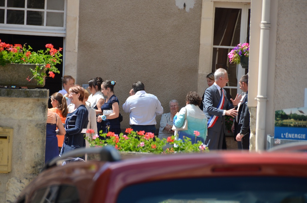 L’Isle le 6 juillet: Ne vous y trompez pas, même si cela ressemble à un mariage, ce n’est qu’une fiction. Un spectacle qui s’est déroulé dans la rue et à la mairie de L’Isle sur Serein, où tous les acteurs jouaient leurs propres rôles ( un vrai adjoint au Maire et des vrais invités). De quoi faire rêver les jeunes filles du village.
