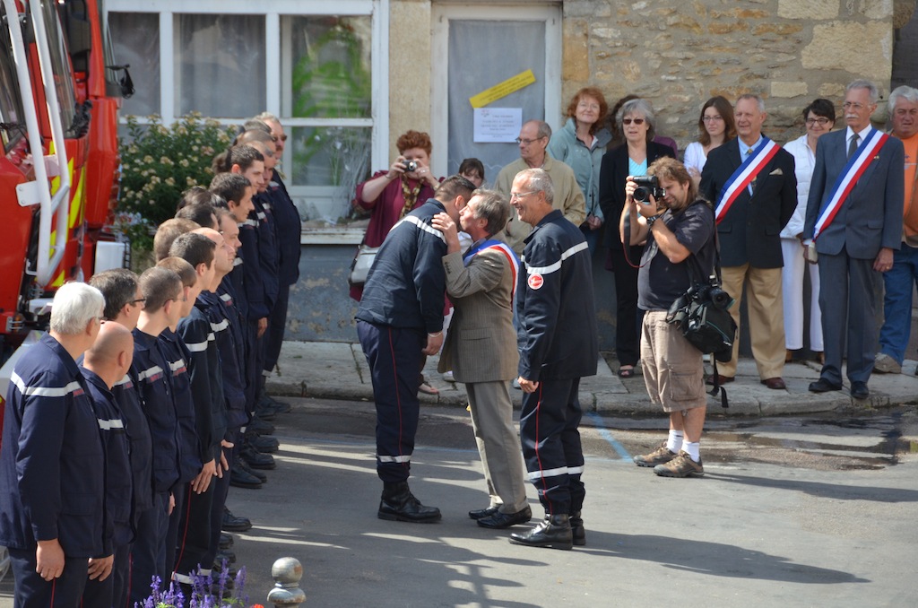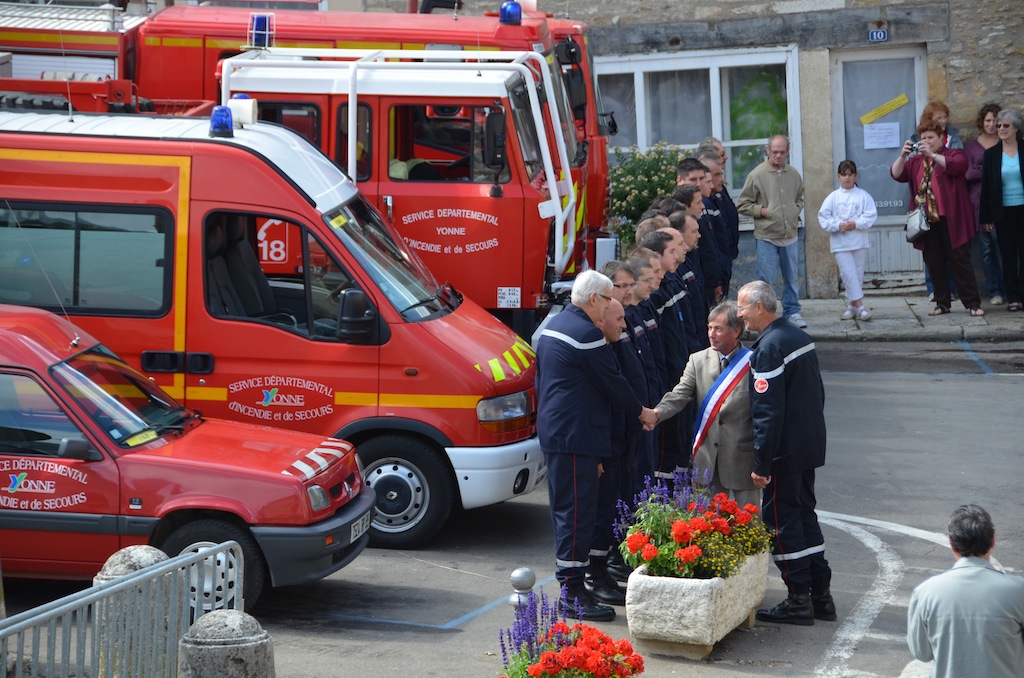 L’Isle le 14 juillet: Reportée d’une journée a cause du mauvais temps, c’est ce soir qu’a eu lieu le feu d’artifice de L’Isle sur Serein. Celui-ci reste, incontestablement, un des plus beaux feu d’artifice du canton. Mais cette journée ne se résume pas qu’à cela. Le jour du 14 juillet est aussi celui ou le Maire de l’Isle sur Serein Alain Chaplot, passe en revue le corps des sapeurs-pompiers de la commune. Ainsi, en fin de matinée, les habitants de L’Isle ont pu assister cette cérémonie. Après la photo de groupe du corps des pompiers de l’Isle, a eu lieu la remise des médailles. Cette fin de matinée s’est conclue par le verre de l’amitié dans la cour de la mairie où le maire a notamment informé la population sur des risques encourus par une rotation intense de véhicules qui allaient traverser le village pour alimenter un énorme chantier sur le secteur proche. Quelques mots sur le concours de fleurs et sur la citation à l’honneur d’une institutrice. Ainsi s’achève cette matinée. les festivités redémarrent vers 22h avec la retraite aux flambeaux, qui dirige le public vers l’espace où a lieux le tire des feux d’artifices de L’Isle. Celui-ci sera tiré par l’artificier de la commune, Henry Circus. La soirée se terminera pour les plus courageux au foyer social et éducatif, transformé pour l’occasion en discothèque.