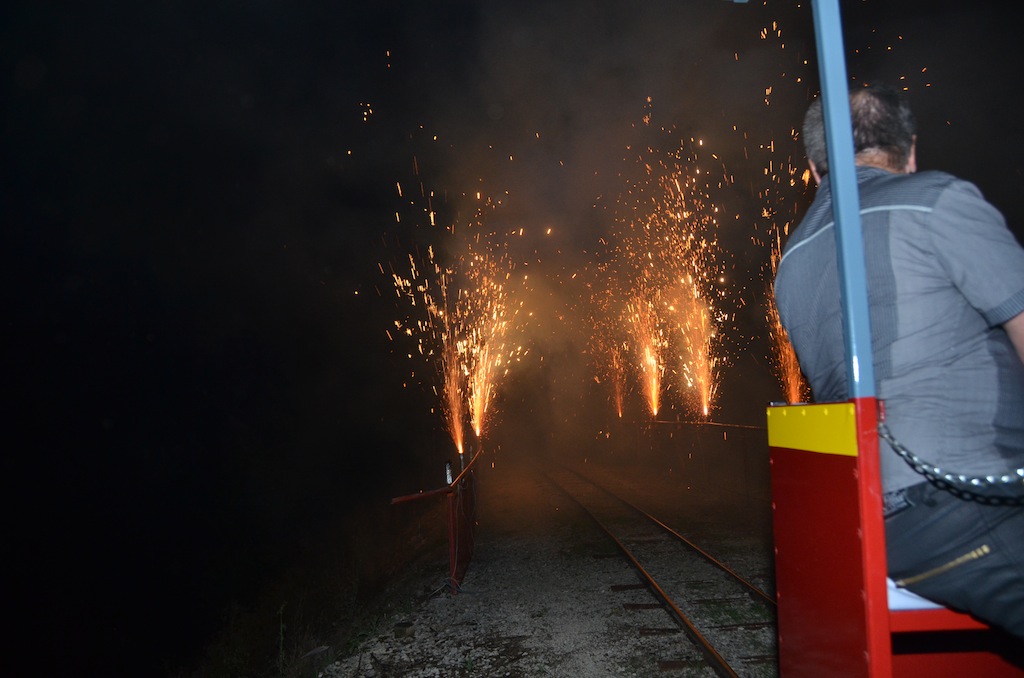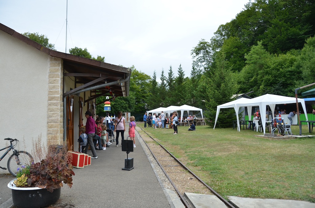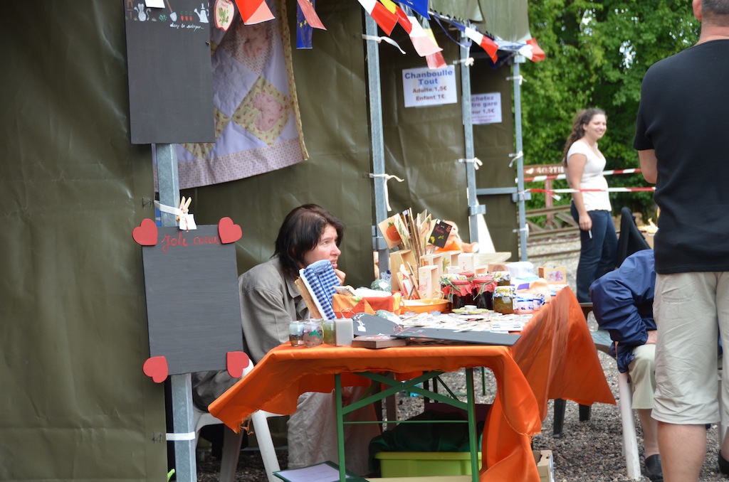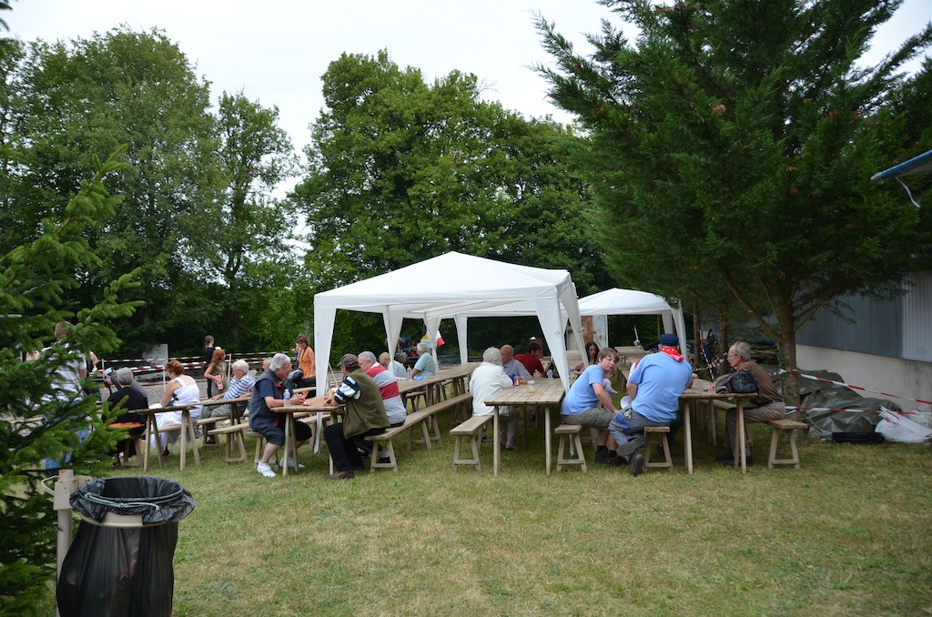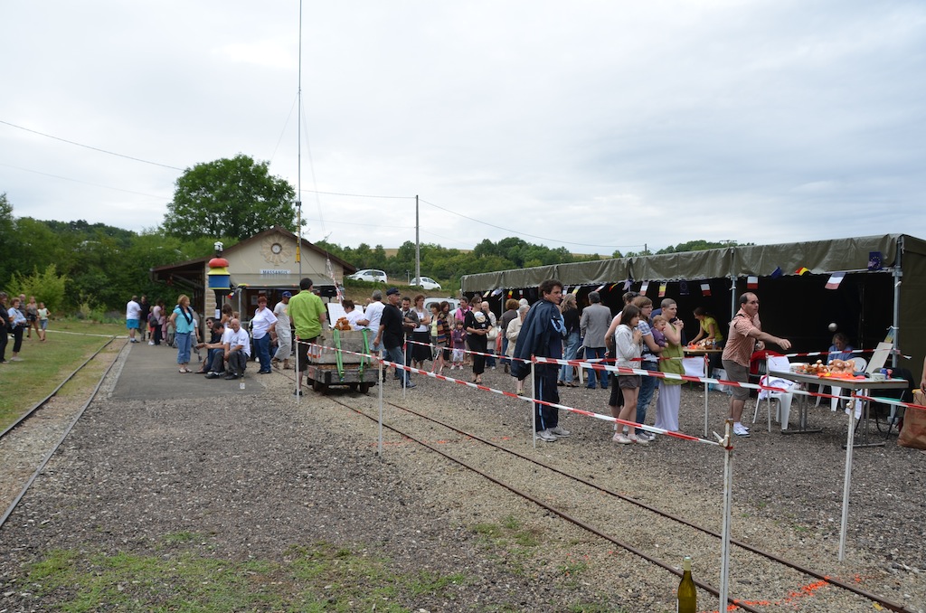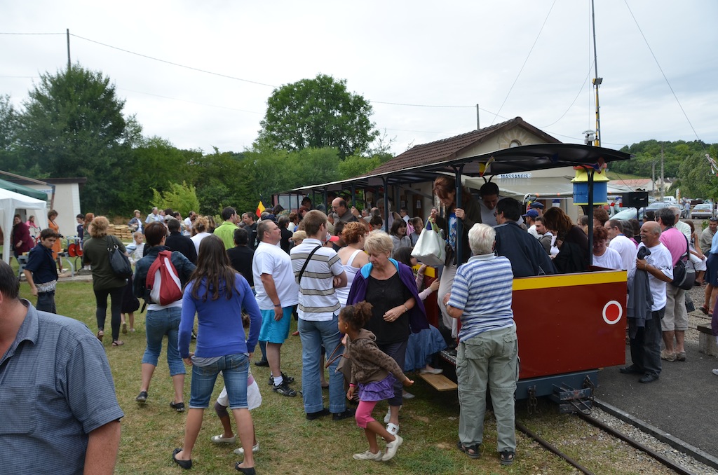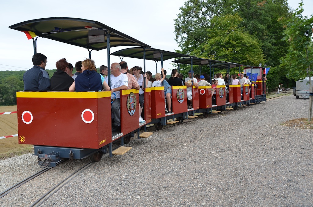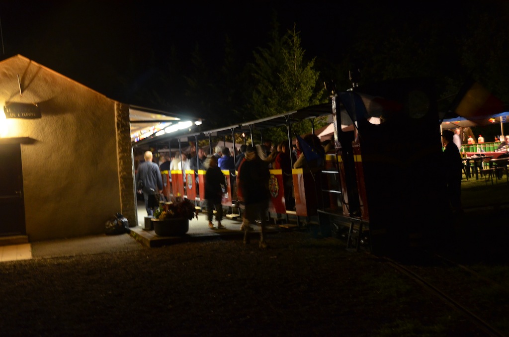 Massangis, le 16 juillet: On ne peut pas parler du tacot de Massangis sans faire un bon en arrière (100 ans) et expliquer l’origine du »Tacot ». Le « Tacot » est le nom d’une des nombreuses voies de chemins de fer départementales qui sillonnaient la région à la fin 19ème siècle. Cette ligne (le tacot) qui reliait L’Isle-Angely à Laroches-Migennes a, pour sa part, fonctionné des environs de 1890 à décembre 1951 fin officielle de l’exploitation de celle ci. Le « Tacot » sous sa forme actuelle est un petit train de randonnée qui occupe un tronçon de l’ancienne voie. Sa longueur totale est d’environ 3,5 km et ce dernier met 50 mn pour les parcourir, le but étant d’allier tourisme et plaisir. L’idée de ces installations a germée dans la tête d’un passionné de trains miniatures lorsqu’un jour, ayant accompagné son fils à la pêche, il découvrit le long du fossé un tas de ferrailles dans lequel se trouvait bon nombres de tronçons de rails de voies étroites dites « voies decauville » (la marque) que l’on trouvait fréquemment sur les grandes installations (usines et autres) de l’époque. De la détermination et une bande de copains ont fini par mettre à jour ce petit train (tout a été construit, locomotive, wagons, aiguillage, etc…). Cela ravi, chaque année, petits et grands lors de leurs passage dans la région. D’année en année, les installations se sont étoffées de gare, hangars et autres, pour les besoins du fonctionnement. C’est aussi devenu un lieu incontournable au moment de sa fête, dite « La Fête du Tacot », à la mi juillet. Cette année encore, la manifestation a attiré un très grand nombre de visiteurs, tant pour la ballade, que pour toutes les activités et jeux d’adresses proposées en journée, ainsi que le grand repas du soir. Trois beaux moutons attendaient les convives, et une gerbe de feu a salué les derniers voyageurs, la nuit tombée. Seule la pluie n’était pas au rendez-vous, malgré un temps légèrement maussade, laissant quand même passer quelques généreux rayons de soleil.