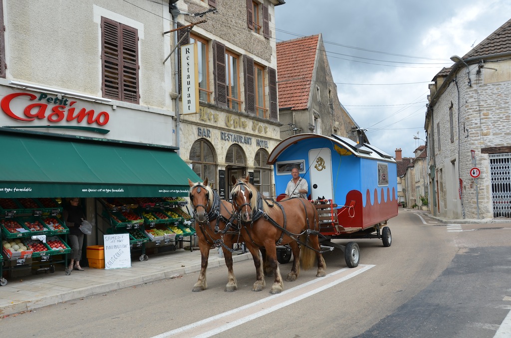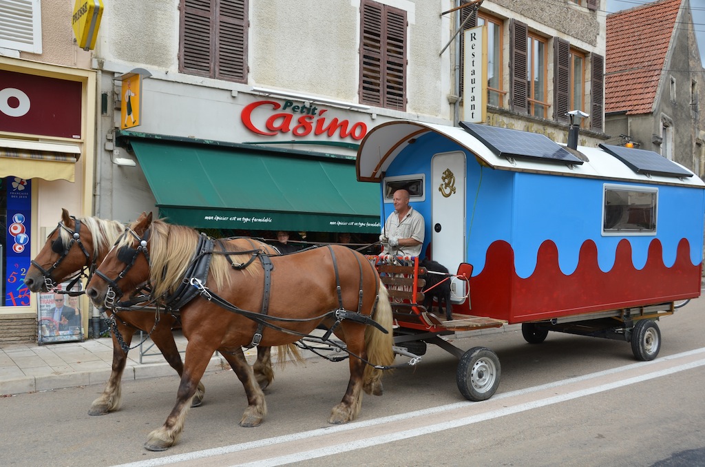 L’Isle le 09 août: De passage l’an passé dans le village, ( voir article précédent: http://serge-angeles.over-blog.com/article-57578870.html ), après une nuit passée aux abords de Noyers sur Serein, voici notre homme à la roulotte de retour. En fait de retour, ce joyeux cocher est plutôt sur le départ, l’an passé était une ballade de préparation, Vladivostok étant sa destination. Et lorsque l’on pose la question sur le choix de celle-ci, voici sa réponse: « C’est la seule distance que l’on puisse faire d’une traite sans sa mère. Cela ne veut pas dire que je suis fâché avec la mienne! ». Avec une pareille joie de vivre, il ne reste plus qu’à lui souhaiter bonne route.