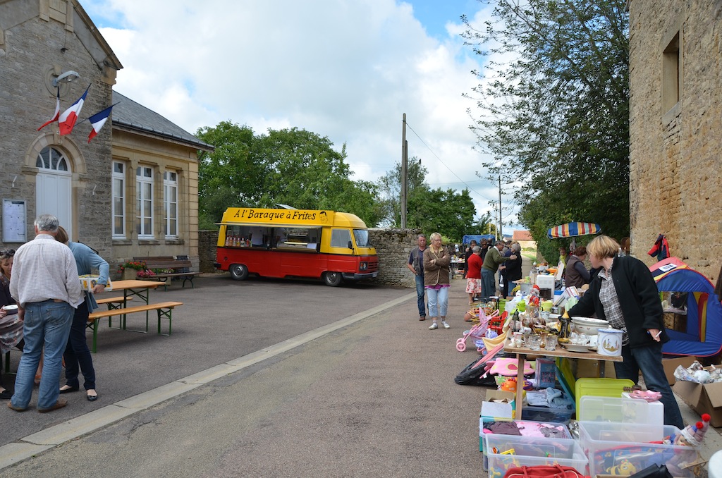 Blacy le 07 août: C’est par une journée ensoleillée que s’est donné rendez vous la quinzaine d’exposant au vide grenier de Blacy, organisé par le comité des fêtes du village. Objets divers, meubles et bibelots garnissaient les étales des vendeurs. Présent sur le site, la baraque à frites du boucher de L’Isle sur Serein a réjoui les visiteurs affamés.