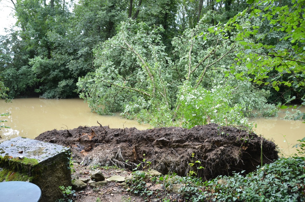 L’Isle le 25 août: Le violent orage qui a éclaté dans la nuit du 23 au 24 août n’est pas passé sur L’Isle sans faire de dégâts. Les principaux apparaissent sur les jardinières de la commune en les martyrisant quelque peu, un arbre de fort diamètre est tombé dans le Serein  à l’entrée de L’Isle, côté Avallon, et un éleveur a eu dix vaches foudroyées. En ce qui concerne l’arbre, ce dernier n’est pas tombé dans la nuit, mais un peu plus tard dans la matinée. Ce détail est donné par la propriétaire des lieux, précisant que peu de temps avant cette dernière était en train de nager dans la zone sinistrée, considérant qu’elle avait eu de la chance de ne pas se trouver là au moment de la chute. Pour les vaches, l’éleveur pense que ses bêtes étaient toutes regroupées sous un même arbre, cherchant un abri au moment de l’orage, et que la foudre serait tombée sur ce dernier. La pudeur invite à ne montrer que les photos concernant la chute de l’arbre …