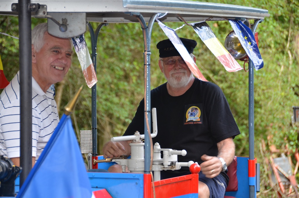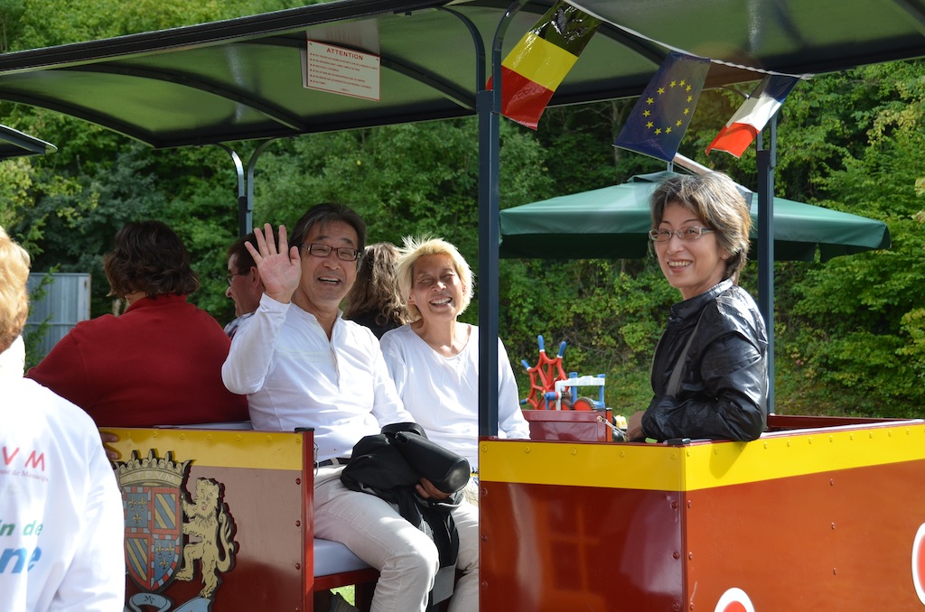 L’isle le 11 septembre: C’est à vélo que sont arrivés les derniers voyageurs du « Train de 16h ». Des Visages que le chef de gare n’a pas l’habitude de voir. Ce couple de japonais venu séjourner une petite semaine dans la région a été fort ravi du voyage que propose « L’Association du Petit Train à Massangis ». Amusés par la lenteur du voyage, ils n’en ont pas moins été émerveillés. Attentifs aux explications, lors de la halte en bout de ligne en compagnie du groupe du comité des fêtes d’Angely venu en nombre, ils repartirons l’appareil photo rempli de souvenirs. Ue autre forme de voyage pour « le petit train ». À suivre , « l’album » du voyage …