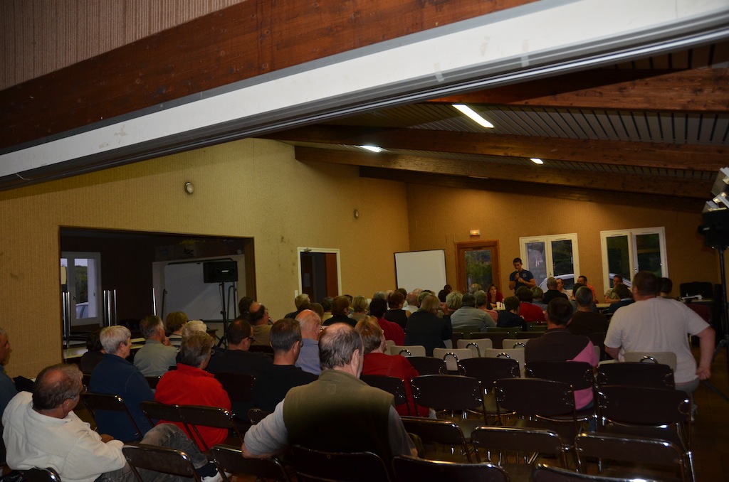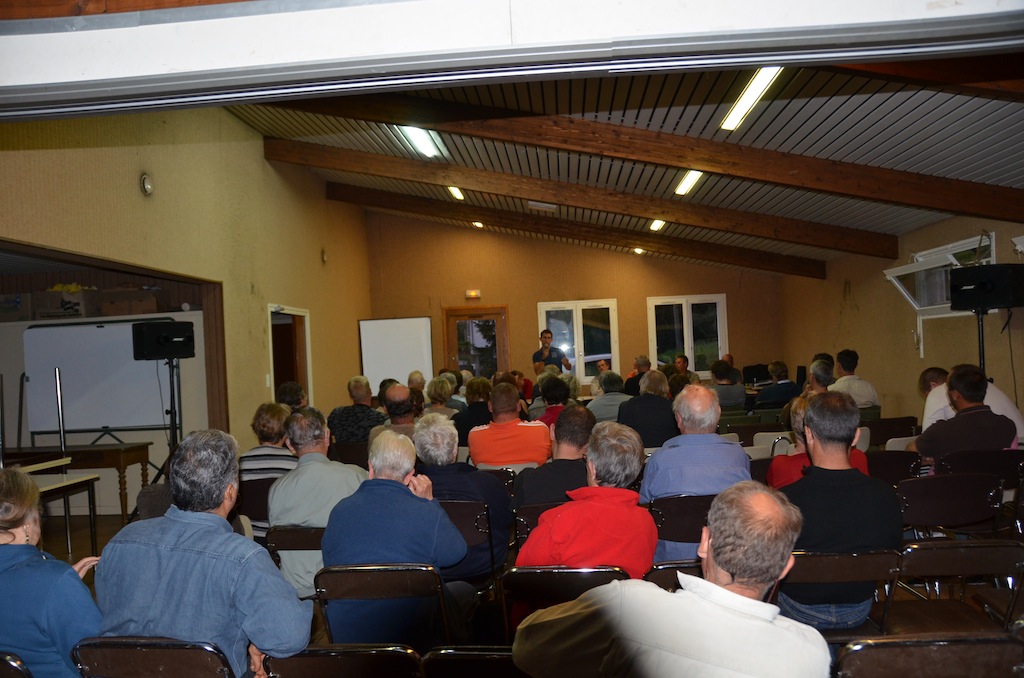 Massangis le 15 septembre: La réunion qui se tenait ce jeudi 15 septembre au Foyer Sociaux Éducatif de Massangis contenait à l’ordre du jour trois grandes lignes. 63 personnes étaient à l’écoute de Xavier Courtois, maire de Massangis, et son conseil municipal, présentant au public celles-ci en commençant par les missions et travaux accomplis depuis 2008, année d’élection du conseil municipal actuel, en respectant les idées du précédant conseil. Tennis, Aire de jeu, Pont de Massangis, entretien des circuits de Randonnées etc… ont tour à tour été évoqués. Vient ensuite un long débat sur les installations photovoltaïques qui alimentent l’actualité d’aujourd’hui et qui sont bel et bien une réalité en cour de réalisation sur les territoires de la commune. Le maire Xavier Courtois explique, phase par phase, les différentes étapes du projet et ses retombées économiques. Un souhait profond à l’aboutissement du second projet d’énergie renouvelable (l’éolien) a fait partie du discours. Puis vient l’avenir proche, et ainsi Xavier Courtois fais part à l’assemblée de ses ambitions pour le village sur un plan de développement économique et touristique. C’est par la création d’un foyer rural, où toutes les associations désireuses pourraient se retrouver, que pourrait se réaliser ce développement. Chaque association aurait ainsi à sa portée des outils de communications et d’organisations pour mettre en place leurs diverses manifestations. il pourrait se créer au sein de ce foyer des sections de plus ou moindre effectifs, engendrant des activités durables ou ponctuelles (ateliers … peintures, … sculptures … chants etc…) à l’initiative de chacun, s’inscrivant dans un schéma de développement, mission première d’un foyer rural. Rendez-vous est donc donné à toute personnes intéressées … et se tiendront dans les prochains jours des réunions constitutives pour ce dit foyer