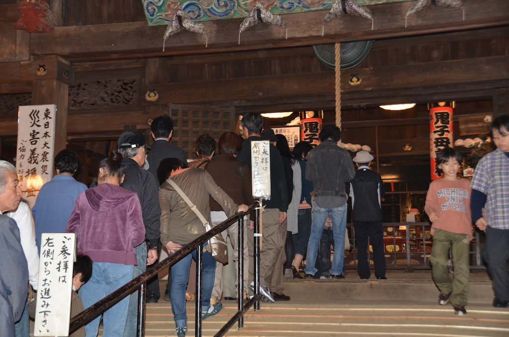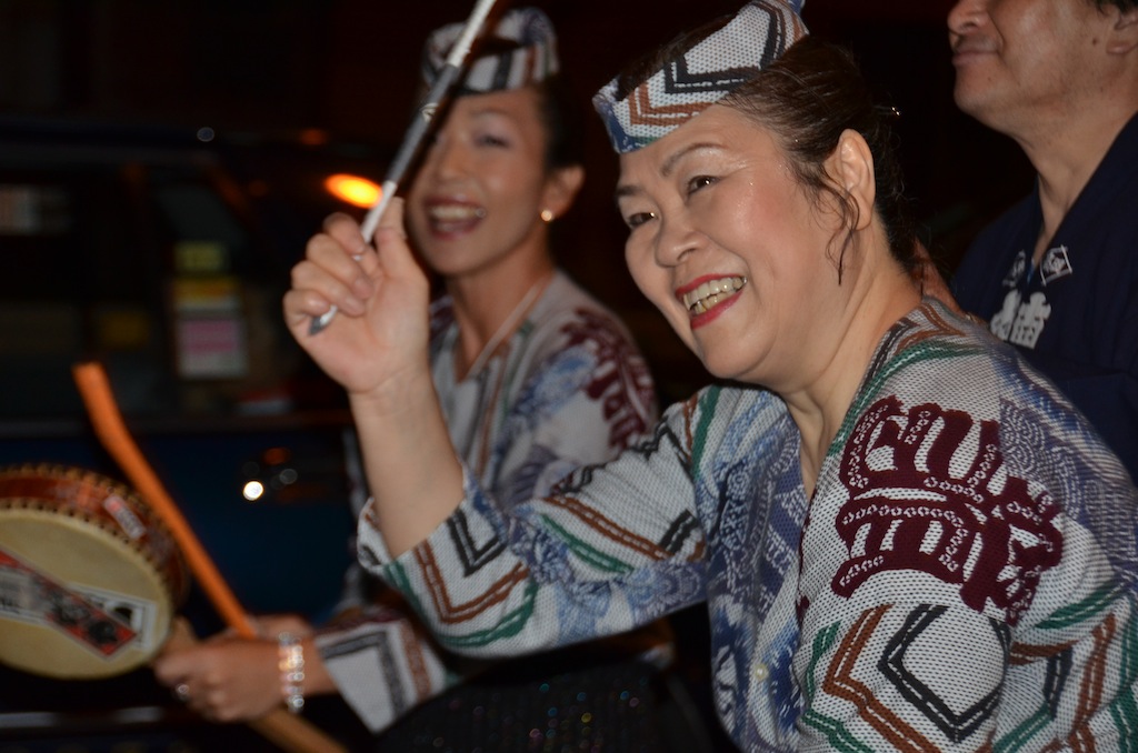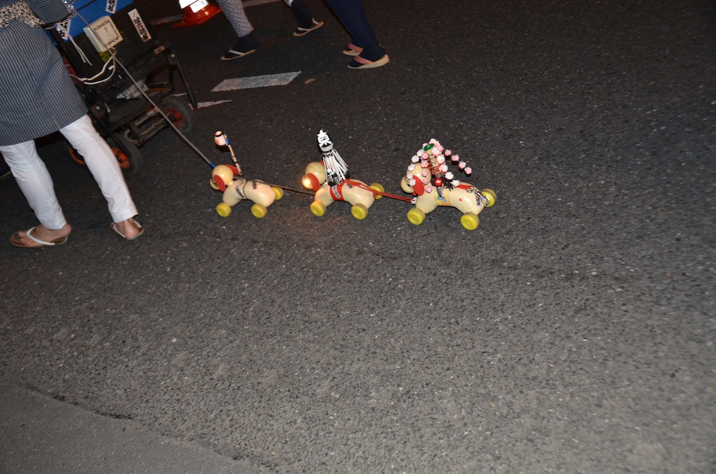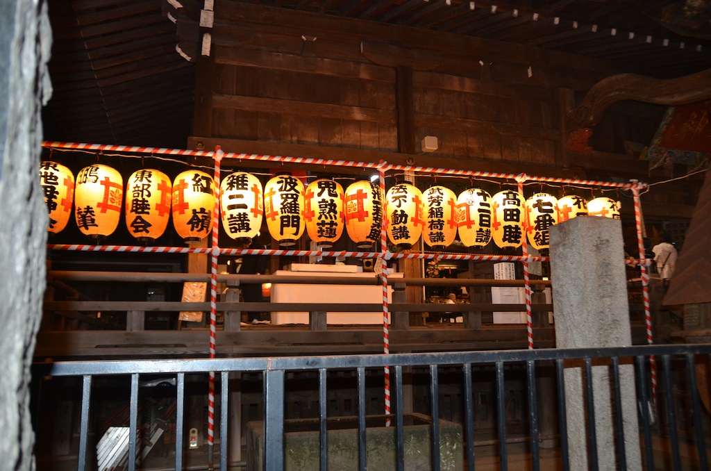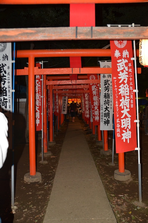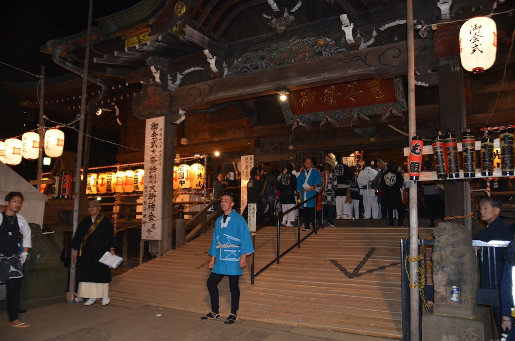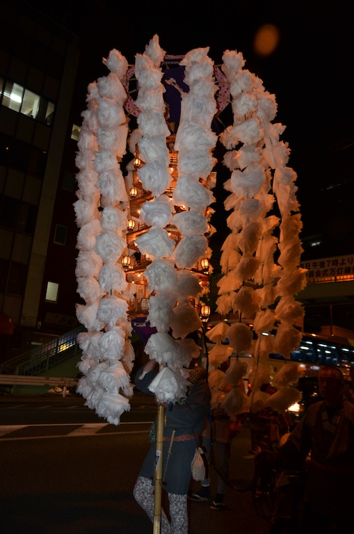 Tokyo le 18 octobre: Kishi Bojin, c’est le nom que donnent les vieux, et moins vieux, habitants dans ce quartier de Toshimaku, à cette fête qui réuni autour du Temple , bon nombre d’habitants du secteur et d’ailleurs. Cette fête qui dure trois jours se déroule principalement en soirée dans les espaces autour du temple ou l’on trouve une multitude de petites échoppes vendant essentiellement de la nourriture. Un peu plus loin, ont été installé sous des abris de toiles , des espaces remplis de tables et de bancs, permettant d’accueillir le public et les participants de cette fête. Une fête de cette envergure suscite de la curiosité, et une chose peu banale que l’on rencontre de plus en plus, c’est que bien souvent les participants de ces grands rassemblements, ne connaissent pas les origines de celui-ci. … Ça concerne qui? La réponse viendra d’un ancien en parlant de « Nichiren » ( un bel article sur wikipédia parle du personnage). Cette fête est reliée à un évènement particulier? … si le » bien sûr » est plutôt collectif, les raisons en sont très différente. Si pour les uns, cette fête célèbre la naissance, pour les autres, c’est pour sa mort que cette fête est célèbrée. La consultation des archives donnerai raison aux seconds en apparence, car cette manifestation se déroulant autour du 15 octobre correspondrai plus à la mort de Nichiren (le 13 octobre 1282, wikipédia toujours). Pour le public, c’est beaucoup plus simple » …c’est comme ça depuis plus de 400 ans « … « c’est une fête annuelle » … (Pour ceux là, la théorie des 10 singes s’applique sans aucun doute). Un peu plus tard dans la soirée, un grand nombre de participants se rassemblent dans un cortège en multiples groupes portant des tenues différentes. Cette année et dans ce quartier, ils seront au nombre de 35 (un ancien se souvient qu’il y a quelques années, ils pouvaient être 400). Ces groupes sont en fait des associations représentatives du quartier, qui évoluent dans des activités et domaines tout aussi variés les uns des autres (sportifs et culturels en majorité). Elles respectent toutes le même ordre de formation au sein du cortège et est ainsi constitué: devant, les emblèmes, suivent les danseurs et les musiciens, le symbole, quand à lui, fermera le groupe. Pour ce dernier les réponses aux questions ont toutes été identiques: « ce symbole représente un cerisier en fleur …. l’histoire dit que le jour de la mort de Nichiren, un (ou plus) cerisier à fleuri! ….. La procession fera ainsi le tour du quartier avant de se retrouver devant l’autel du temple pour recevoir la bienveillance du moine et formuler des vux. Une soirée dans le calme et la joie sous l’il protecteur des représentants de l’ordre. A suivre en images, cette soirée de liesse.