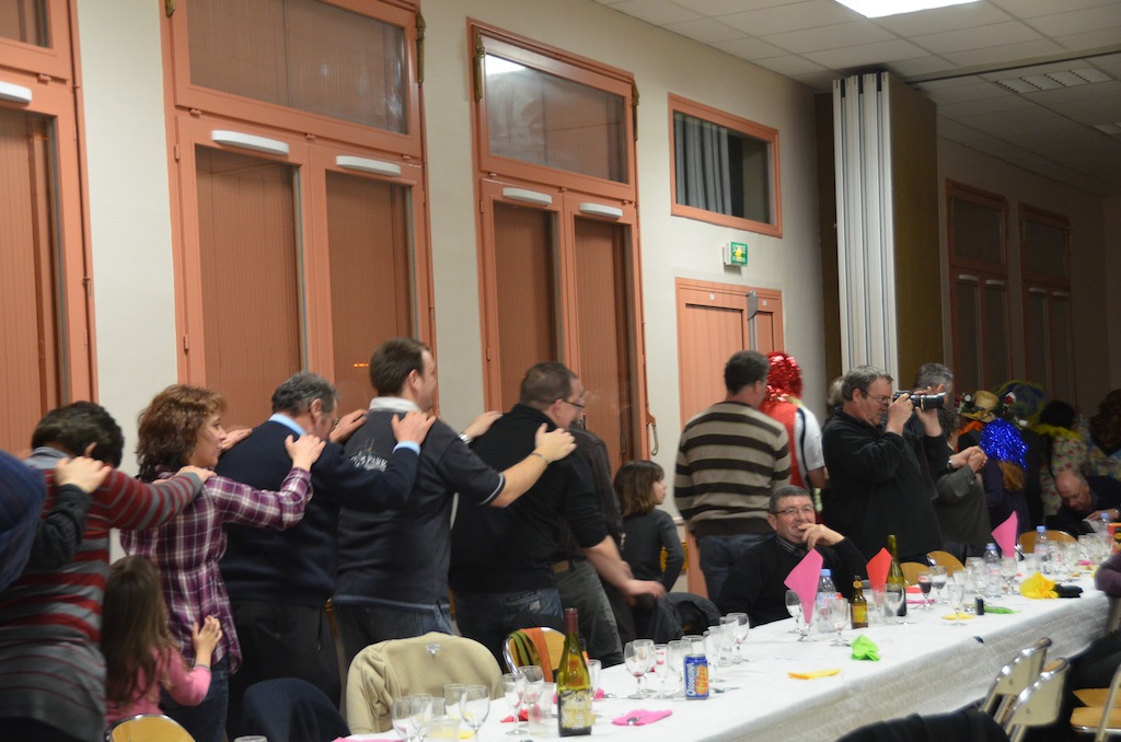 L’Isle le 29 février: Que les plus impatients se rassure, voilà enfin l’article concernant le « Repas Ch’ti » auquel bon nombre d’entre vous ont assisté. Ce grand repas à été organisé par l’association des « Ch’tis de l’Isle » au foyer du village ce samedi 25 février. Si cette soirée se voulait être au départ un dîner avec accompagnement musical et Karaoké en fin de soirée, ce dernier s’est rapidement transformé en « Diner-Spectacle-Dansant ». Le tempérament joyeux des organisateurs accompagnés du Maître des Platines, Édouard, ont rapidement créer l’ambiance, à tel point qu’il à fallu ralentir le rythme musical pour que les convives regagnent leurs place de temps à autres pour honorer le repas. Une soirée exceptionnelle ou toutes les générations du village étaient représentées. Le Maire , Alain Chaplot était également présent tant au repas que dans les farandoles. Nous noterons également la présence de nos amis gendarmes qui par leurs présence prouvent que sous l’uniforme, il y a aussi un homme ordinaire. Ceux-ci nous ont d’ailleurs offert une très belle prestation vocale lors du Karaoké. Une soirée très réussie, sommes toutes à l’image de la prestation que nos amis Ch’tis nous ont proposé lors de la Foire Cantonale 2011. Reste à remercier les organisateurs en attendant leur prochaine manifestation. Voici un petit aperçu en image de cette soirée et à vous tous, pardonnez moi pour ces images.