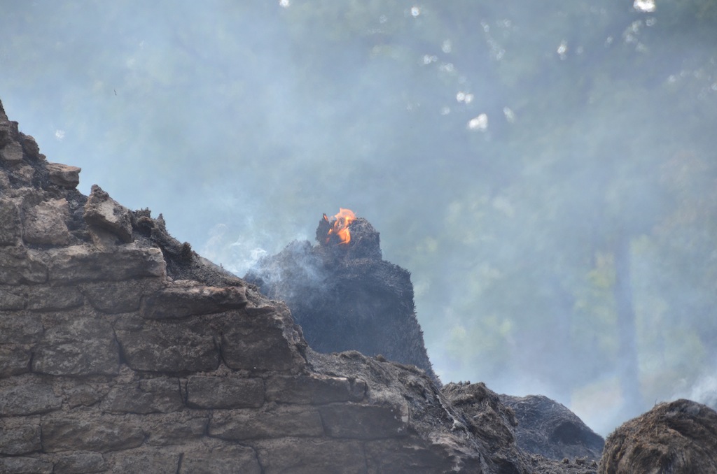 Sainte Colombes le 24 septembre: Un incendie ravage un hangar agricole rempli de paille. Le Feu s’est déclaré aux alentours de 0h30 dans la nuit de ce dimanche. Le SDIS du Canton immédiatement sur place aidé des centres de secours voisins ont passé la nuit pour contenir le sinistre. À 13h ce lundi, le sinistre est sous contrôle. Une équipe reste sur place pour prévenir d’un éventuel redémarrage notamment à cause  des risques vents  annoncés  par « Météo France ». La zone est actuellement inaccessible compte tenu des risques d’éboulements encore  présent.