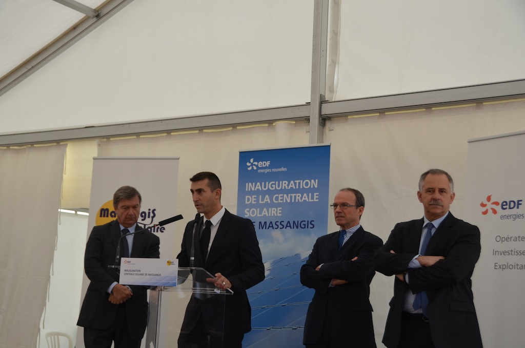 Civry le 18 octobre: Beaucoup de monde en cette fin de matinée du 18 octobre 2012 sur les plateaux de Civry-Massangis pour assister à l’inauguration de la centrale photovoltaïque récemment installée, que l’on peux qualifier de gigantesque au regard de ces quelques chiffres. 190Ha est la surface totale de l’infrastructure, 141Ha représente la surface d’emprise des équipements, 700000 est le nombre de panneaux installés, 56 MgW est la puissance totale que cette centrale sera capable de fournir prochainement dans les conditions optimums de fonctionnement. 30km de réseaux ont été créé pour rejoindre les postes sources d’Avallon (pour 36 MgW) et Annay sur Serein (pour 20 MgW), qui ont permis, comme l’a souligné le Président du Conseil Général de L’Yonne, André Villers, l’installation d’un pré-équipement fibre optique dans le cadre de l’installation du haut débit envisagée dans un avenir proche. C’est ainsi que, Xavier Courtois, Maire de Massangis, Yvon André, Président Directeur Général d’EDF EN France, André Villers, Président du Conseil Général de L’Yonne, et Pascal Mailhos, Préfet de la région Bourgogne et préfet de la Côte d’Or, se sont exprimé tour à tour, sur les différentes étapes de cette réalisation qui se classe dans le top-ten des installations de ce type sur le territoire français. Deux dates à retenir, le 12 juillet 2011, jour de la réunion d’ouverture de chantier et le 18 octobre 2012, jour de l’inauguration du dit chantier. 15 mois ce seront écoulés entre ces dates. Nous ne manquerons pas de revenir sur les différentes étapes de ce chantier dans les prochaines semaines pour saluer l’ensemble des intervenants, qui, traversant des conditions extrêmes, ont contribué à la réalisation et à la réussite de ce projet.