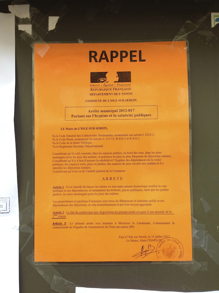 En 2009, un habitant de la commune de L’Isle sur Serein a été mis en garde à vue pour avoir brocardé la municipalité au sujet de déjections canines qui polluaient le village.