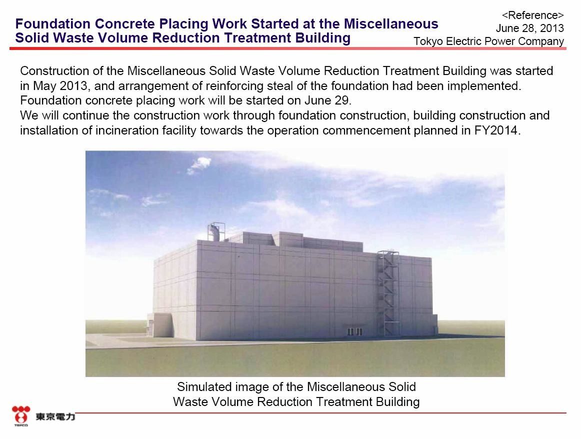 Tepco a engagé la construction d’un gigantesque bâtiment destiné au traitement des déchets radioactifs solides afin de réduire leur volume (source)