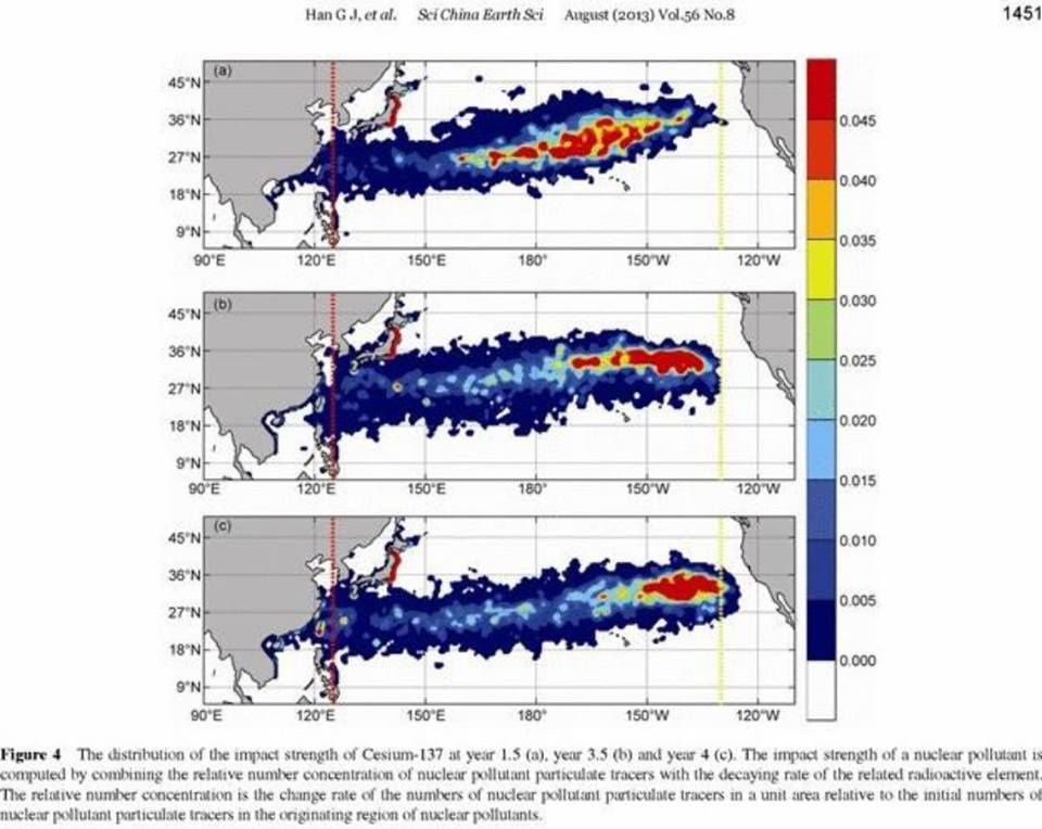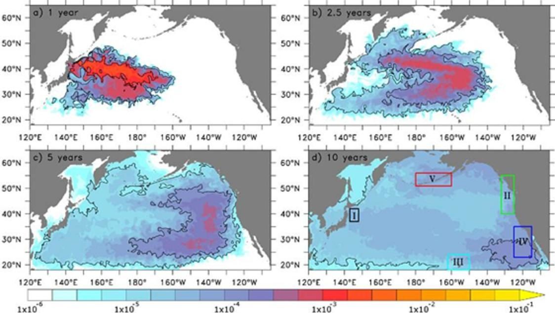 Des scientifiques chinois ont modélisé la diffusion du césium dans le Pacifique. Une reconcentration est possible à l’approche de l’Amérique en 4 ans.
