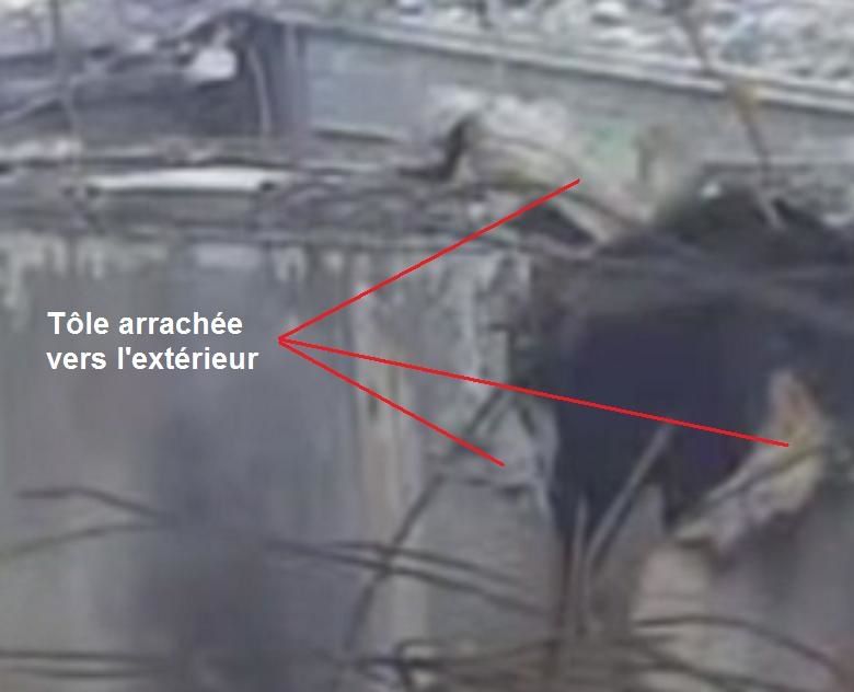 Après le nettoyage de la surface technique du bâtiment réacteur 3, le pont roulant qui s’est effondré en mars 2011 à l’emplacement même de la bouche du réacteur est visible. On remarque qu’une explosion a endommagé ce pont roulant près de l’endroit où l’on observe depuis juillet desdégagements de vapeur. Un trou dans la tôle montre qu’une explosion ou qu’un objet propulsé à cet endroit a replié la tôle vers l’extérieur. Ce qui signifie que la pression venait de dessous. La longueur du trou est estimée à 3,50 m. Qu’est-ce qui a pu traverser ainsi le pont roulant avec une telle violence ?
