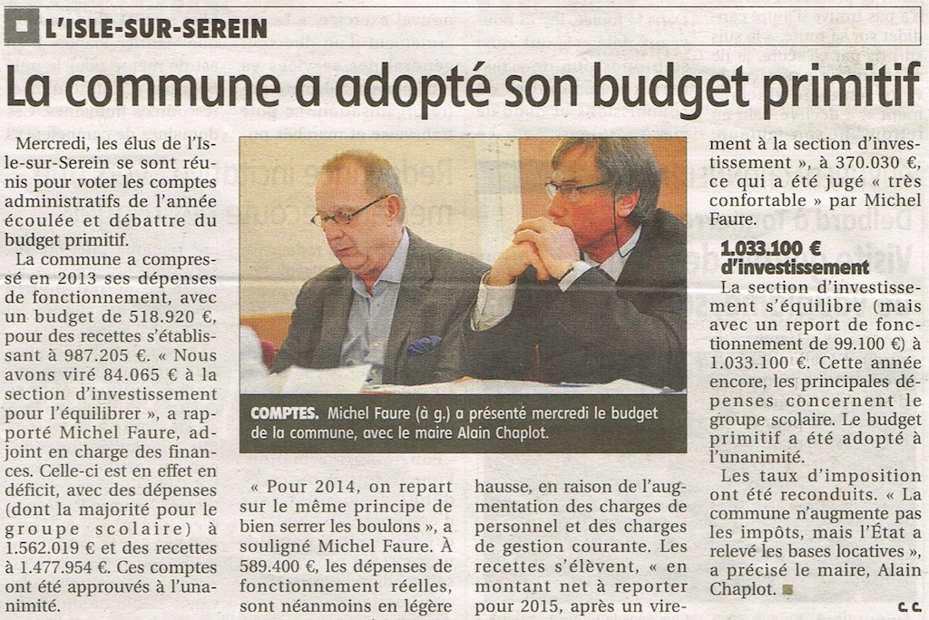 Le principal sujet à l’ordre du jour, adoption du budget final 2013 et approbation du budget primitif 2014.