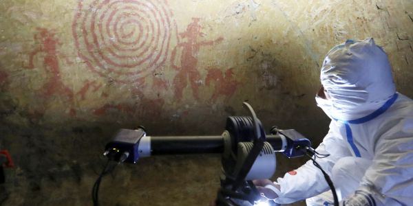 un motif en spirale, des personnages dont certains à cheval et d’autres illustrations sont peintes en rouge sur un mur à l’intérieur de la grotte. Sur ce site culturel du nord du Japon, très renommé, un archéologue du musée de l’Université Tohoku, Atsushi Fujisawa, a terminé, le 10 février 2017, de mesurer le tombeau à l’aide d’un scanner en 3-D. Cette collecte d’informations se fait avec le feu vert du gouvernement municipal de Futaba. En effet, la radioactivité ambiante a atteint, selon les endroits dans l’enceinte de confinement du réacteur 2, 650 sieverts par heure, une quantité de rayonnements telle qu’un humain y décèderait quasi instantanément.